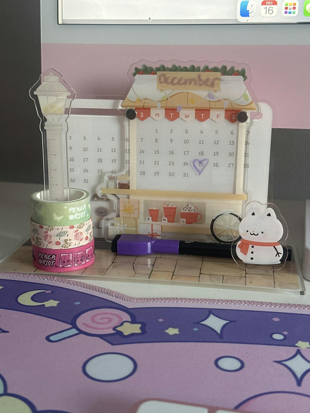 Made with acrylic, you can use a dry erase markers to mark dates and write months! Each set comes with 2 metal hardware, 7 pieces of acrylics (base, date board, 2 reversible character pieces, 2 reversible day pieces, and a ruler lantern piece)